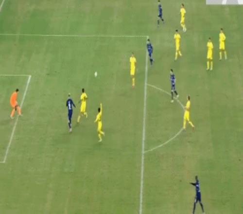 第41分钟,韦斯利头球摆渡,朴志洙头球解围失误,加西亚头球冲顶破门,1比0!