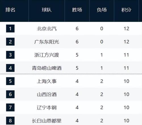 CBA六轮排名!京粤占前2,辽宁下滑第7,吉林青岛黑马,鲁浙倒数