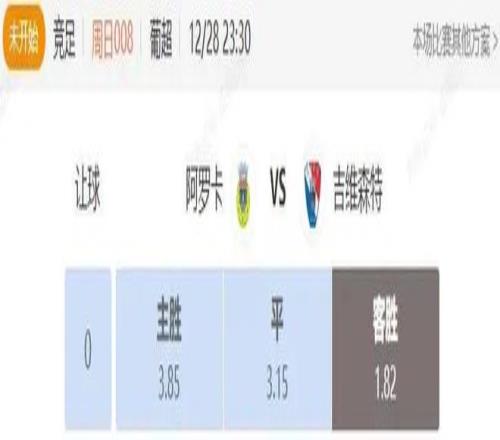 综合来看,两支球队实力定位相近,但本赛季吉维森特战绩十分出色,阿罗卡则表现欠佳。不过过往交手中,阿罗卡占据绝对优势,十七次交手保持不败,这是巨大优势。从各大机构数据来看,给到主队受让二档的让步,对主队支持力度明显不足。此役或是吉维森特打破交手不胜局面的绝佳机会,看好吉维森特取胜。