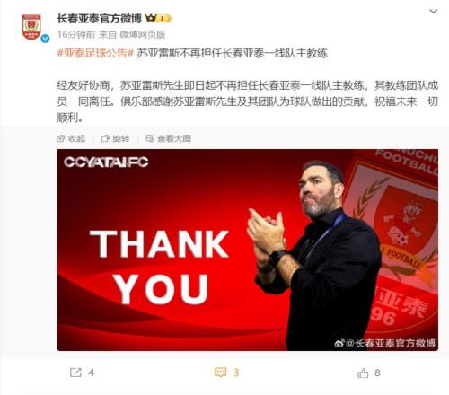 降级背锅侠吗长春亚泰:苏亚雷斯下课!有望留在中国足坛再就业